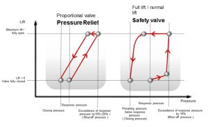 Safety Valve –the opening is sudden. When the set pressure of the valve is reached, the valve opens completely.